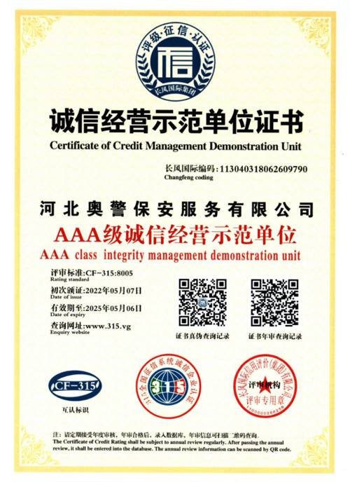 奧警邯鄲保安公司是一家民營保安服務公司,工商行政管理局登記注冊,獲取相關等級資質證書,是一家大型的保安連鎖服務公司。